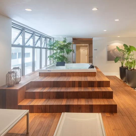 Já no empreendimento, são mais de 10 comodidades de lazer e bem-estar, entre elas: piscinas aquecida e externa, sauna seca e úmida, academia, salão de festas, pub, brinquedoteca, sala de jogos, spa com ofurô, além de segurança 24 horas.